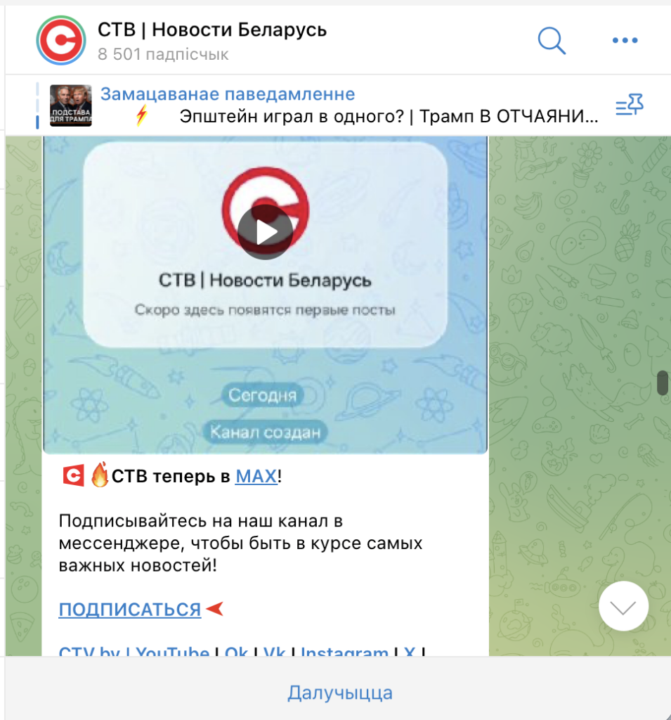 Пасля таго як у Расіі перайшлі да чарговага этапу блакіроўкі Telegram і YouTube, некаторыя беларускія прапагандысцкія СМІ пачалі актыўна прасоўваць свае каналы ў Max.