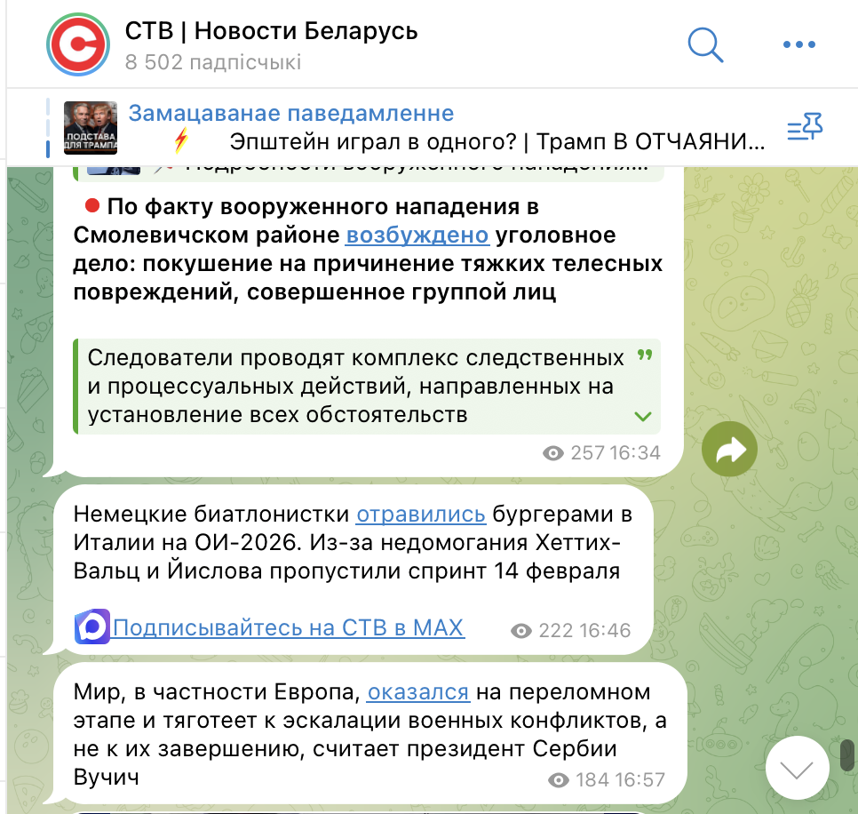 Аналагічныя паводзіны назіраюцца ў тэлеграм-канале СТБ.