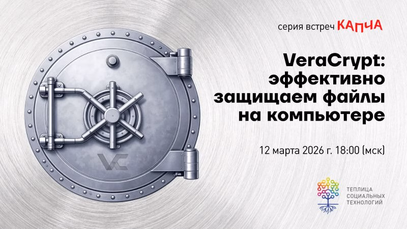 Цяпліца сацыяльных тэхналогій праводзіць інтэрактыўную сустрэчу, на якой пакажуць, як карыстацца інструментам VeraCrypt. Запрашаюць грамадзянскіх актывістаў, журналістаў, валанцёраў і ўсім, хто занепакоены пытаннямі лічбавай і фізічнай бяспекі ў Расіі, Беларусі і іншых краінах, якія аказаліся ў падобных абставінах.