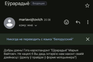 Блогер і актывіст Андрэй Павук размясціў на сваёй старонцы ў Facebook скрыншот электроннага ліста, дзе невядомыя пад выглядам журналісткі Еўрарадыё Марыі Вайтовіч запрашалі Павука на інтэрв’ю. Па словах блогера, сама журналістка не мае дачынення да ліста, а паведамленне скіравана з невядомай паштовай скрыні на Proton, якая не належыць да Еўрарадыё. Прасцей кажучы, хтосьці выдае сябе за сапраўдную … Чытаць далей Невядомыя зноў пішуць актывістам пад выглядам медыя. Просты спосаб, як не трапіць