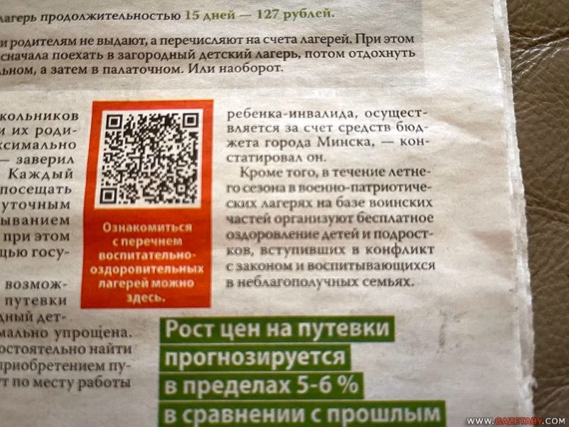 В свежей бесплатной газете «Вечерний Минск» целая полоса отведена на информацию о подготовке к сезону летних детских лагерей. Материал не обошелся без абзаца про круглосуточные военные сборы для детей.