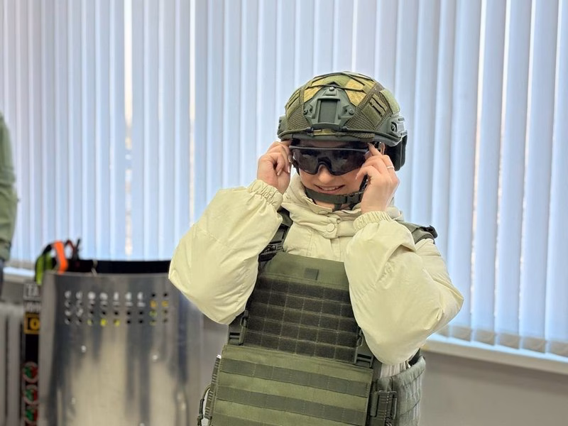 «Для будучых журналістаў была арганізавана экскурсія па адзіным у краіне цэнтры поўнага вытворчага цыклу бронекамізэлек. Студэнтам таксама далі магчымасць прымерыць экіпіроўку, аналагічную той, якую выкарыстоўваюць журналісты ў зонах баявых дзеянняў», — распавядае Мінінфарм.