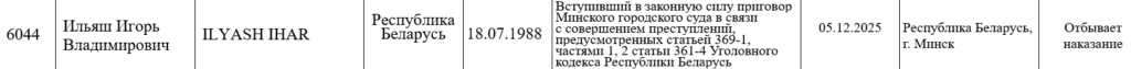 Імя і прозвішча журналіста Ігара Ільяша, асуджанага да 4‑х гадоў калоніі і буйнога штрафу, 5 снежня 2025 года з’явілася на сайце Міністэрства ўнутраных спраў Беларусі ў пераліку асоб, «датычных да экстрэмісцкай дзейнасці». Там жа пазначана, што журналіст «адбывае пакаранне».
